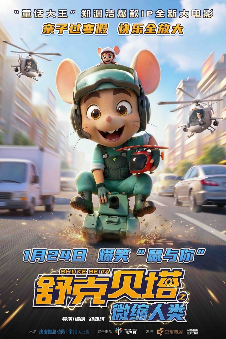 昨天,「童话大王」郑渊洁爆款 IP 全新动画电影《舒克贝塔之微缩人类》宣布定档 2026 年 1 月 24 日。影片由郑亚旗担任导演并编剧,同时发布定档预告与海报。