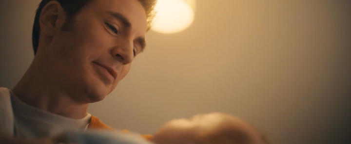 预告片中,克里斯・埃文斯饰演的初代美国队长在本片中「抱娃回归」。