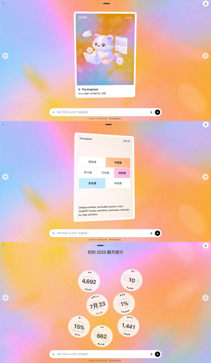 昨天,ChatGPT 首次上线名为「Your Year with ChatGPT」的年终回顾功能,用户可通过应用首页入口或直接发送「我的 ChatGPT 年度回顾」触发体验,