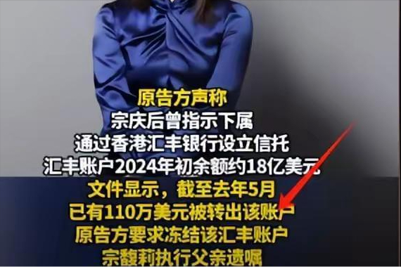 截至2024年初,这个账户里趴着大约18亿美元的巨资,可蹊跷的是,其中一笔110万美元的款项,被指已在2023年5月,也就是宗庆后去世前就秘密转出。